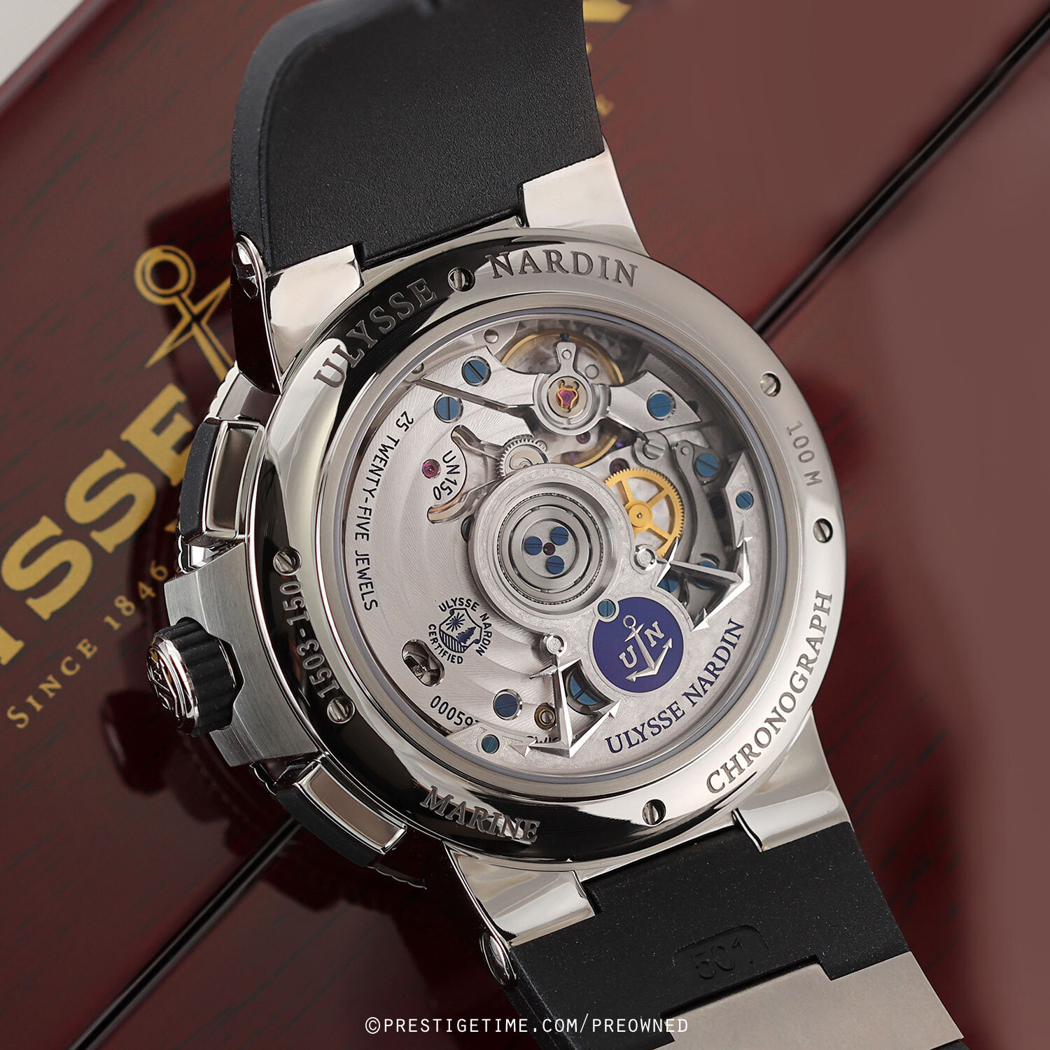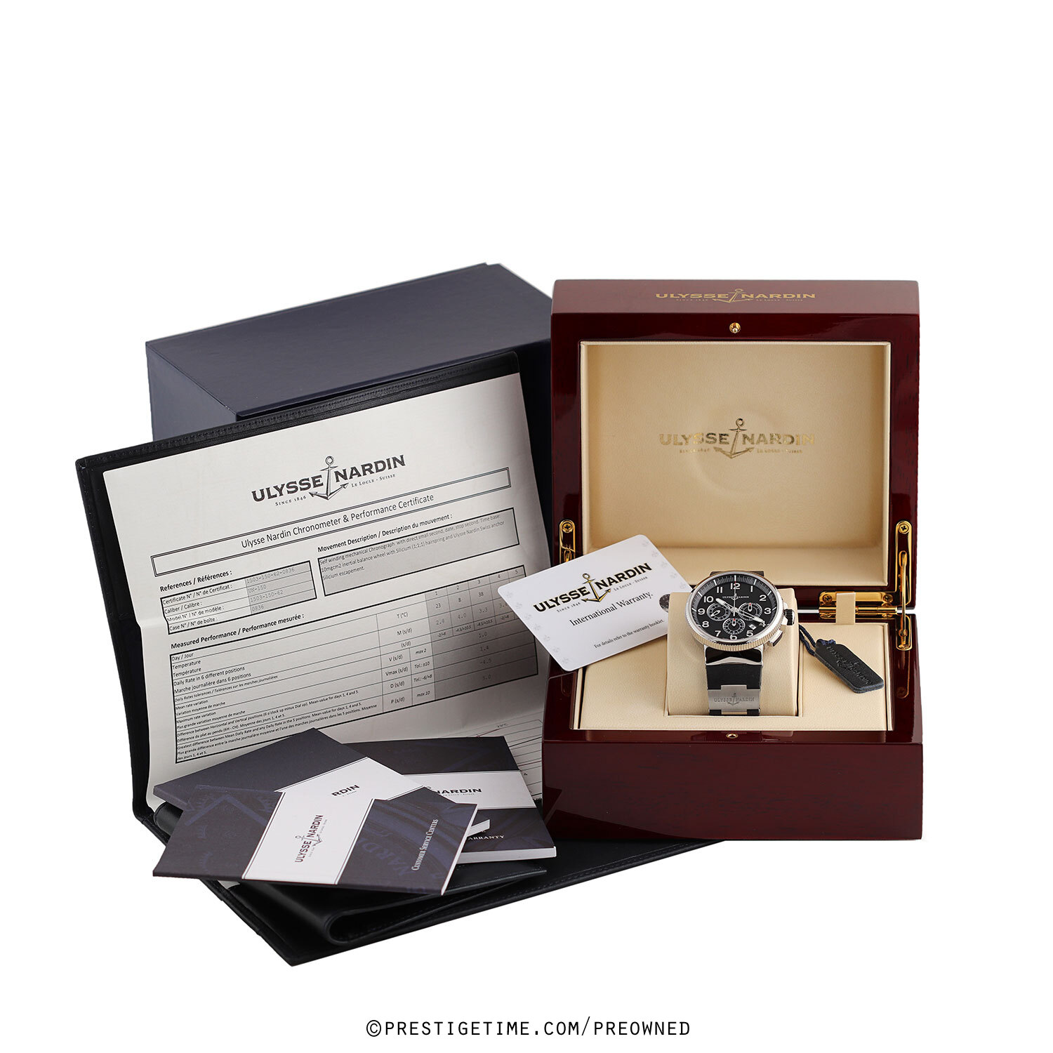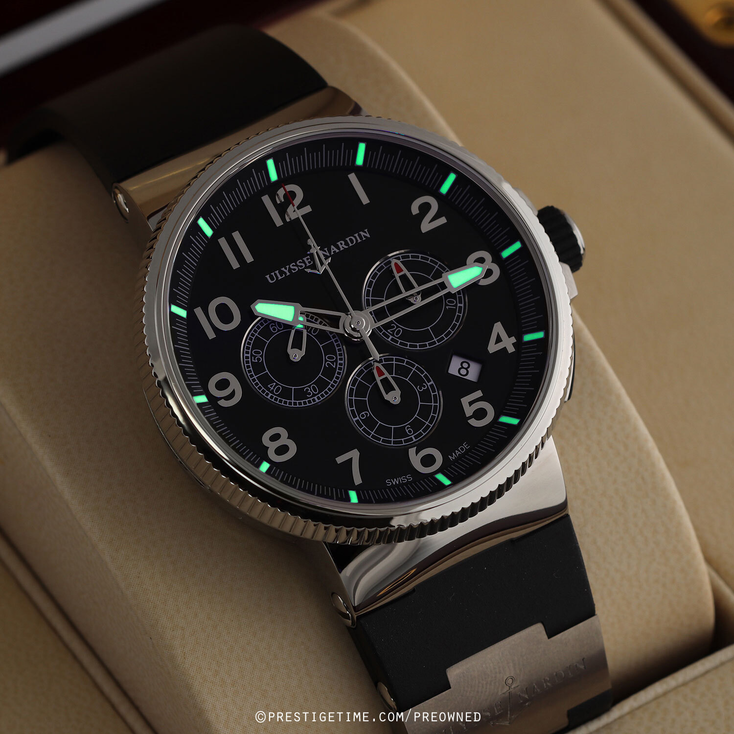 Strap: Fitted on its OEM Ulysse Nardin black rubber strap with an integrated titanium element & a titanium push button deployant clasp .