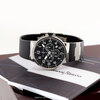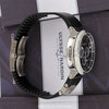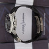 Case: Polished stainless steel case. Fixed bezel with a fluted edge. Brushed finished crown guard. Crown with a fluted black rubber grip. Black dial. Polished hands, the hour & minute hands with luminous filled tips. Applied polished numeral hour markers. Dial flange with luminous hour markers & fine printed minutes/seconds & fractions of a seconds track. Small seconds sub-dial at 9 o'clock. Date window between 3 & 4 o'clock.