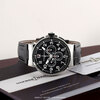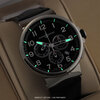 Case: Polished stainless steel case. Fixed bezel with a fluted edge. Brushed finished crown guard. Crown with a fluted black rubber grip. Black dial. Polished hands, the hour & minute hands with luminous filled tips. Applied polished numeral hour markers. Dial flange with luminous hour markers & fine printed minutes/seconds & fractions of a seconds track. Small seconds sub-dial at 9 o'clock. Date window between 3 & 4 o'clock.