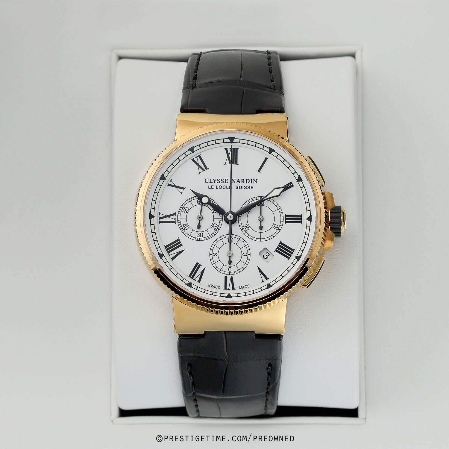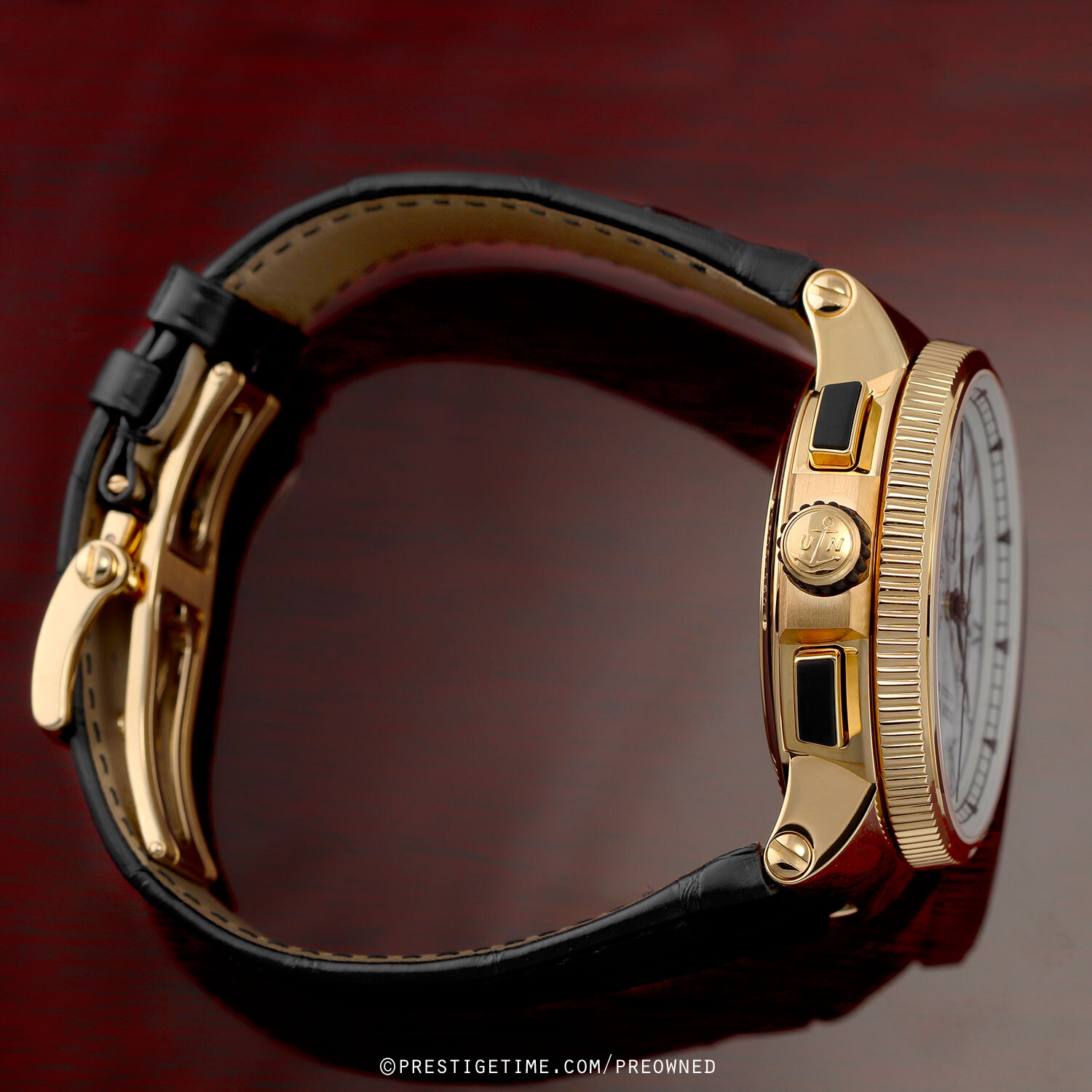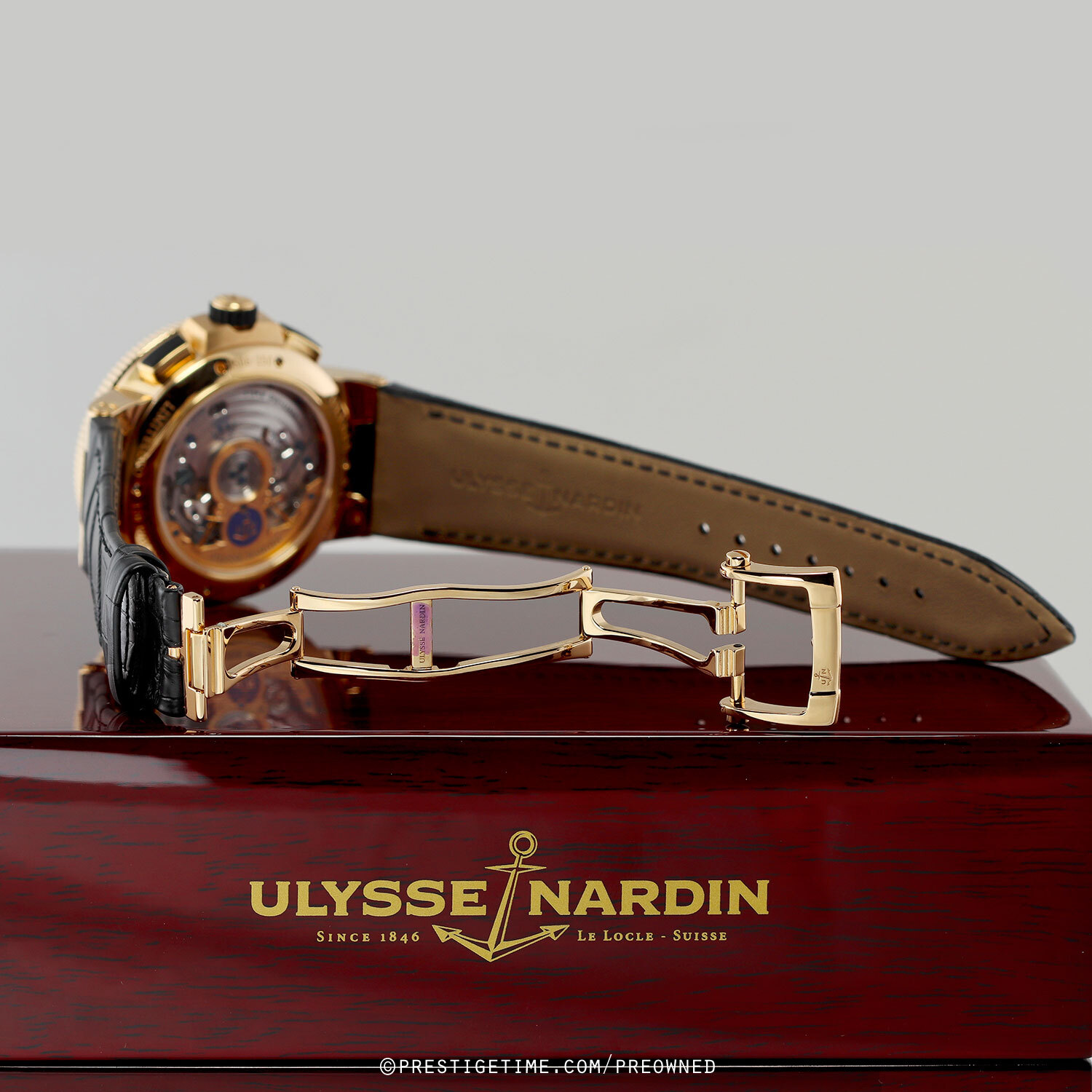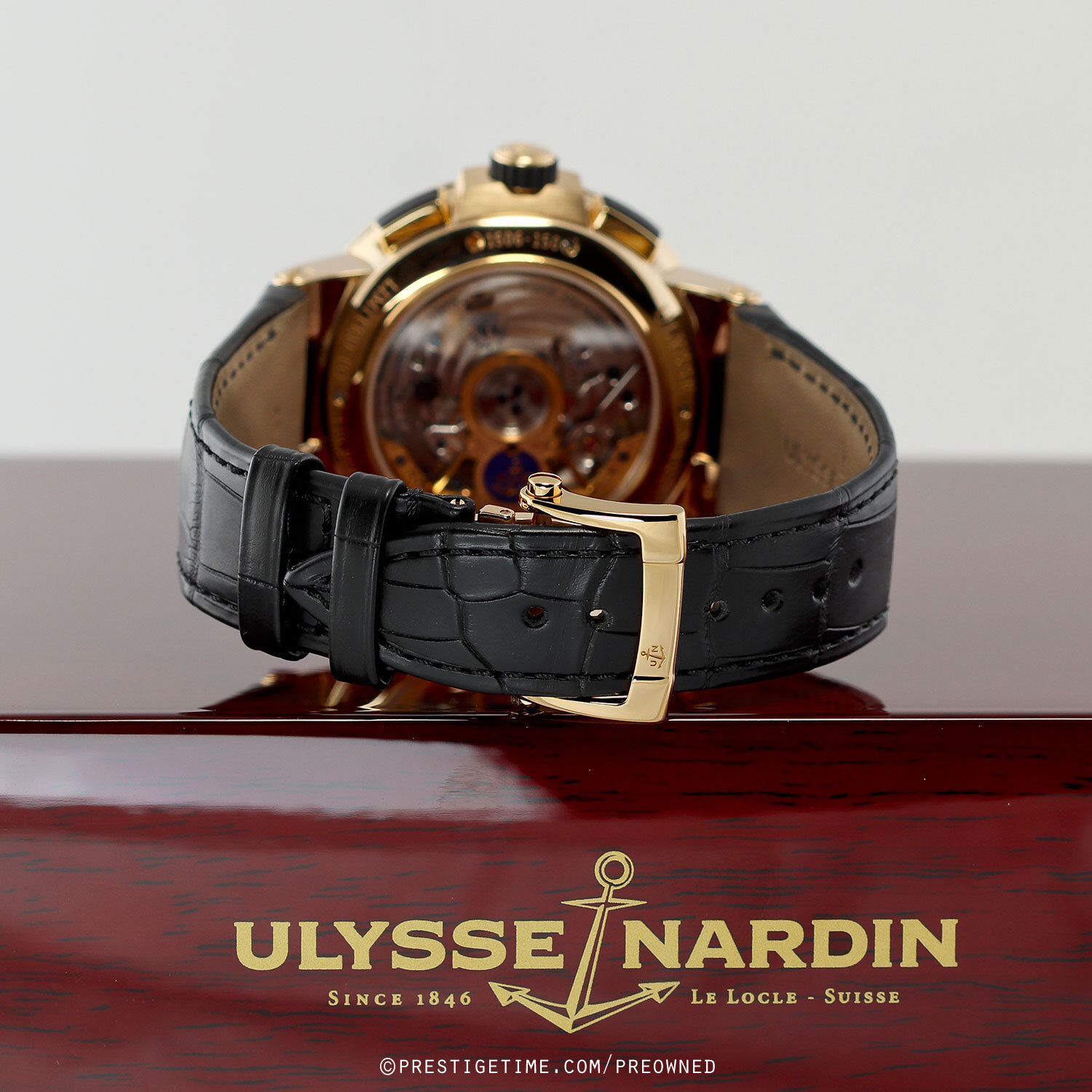 Strap: Fitted on a brand new & unworn OEM Ulysse Nardin black alligator leather strap with a solid 18kt rose gold deployant buckle.