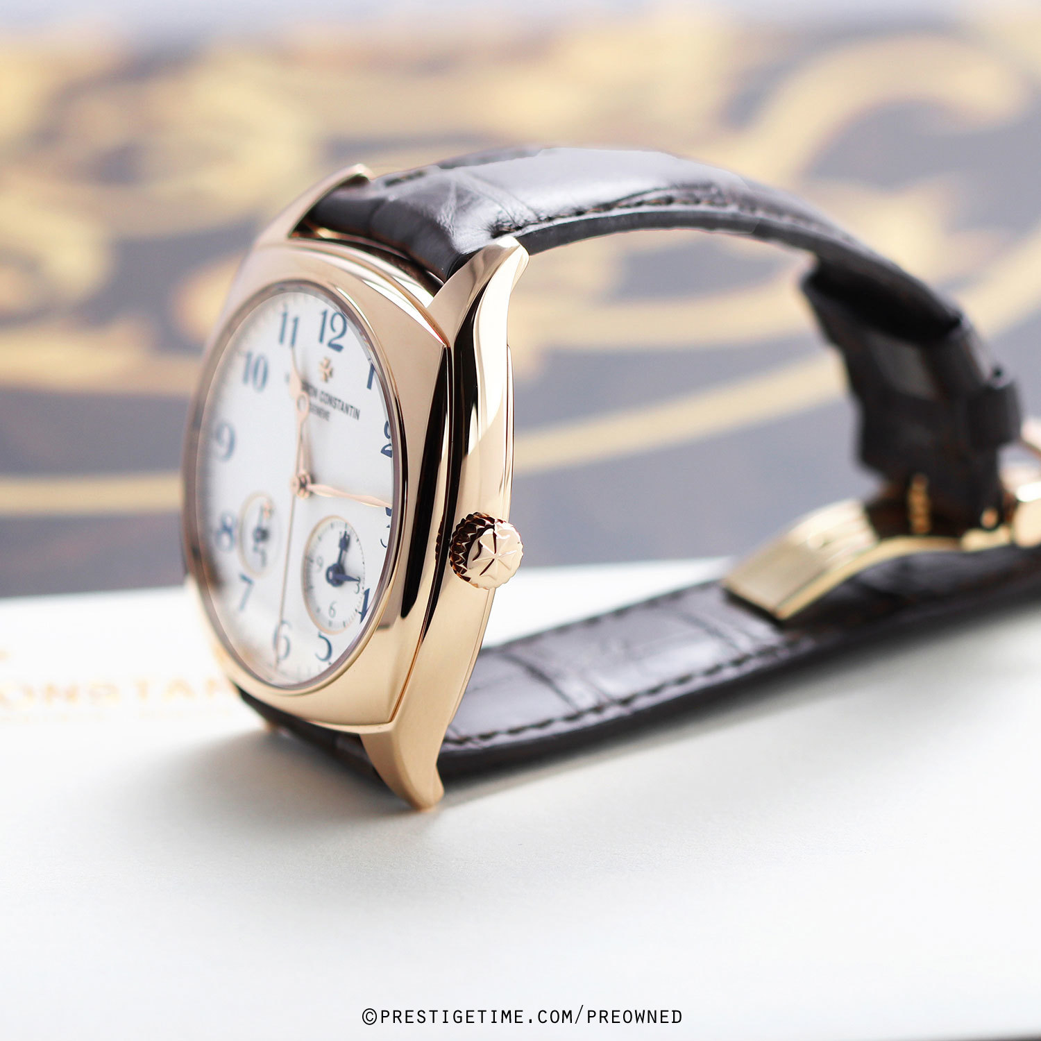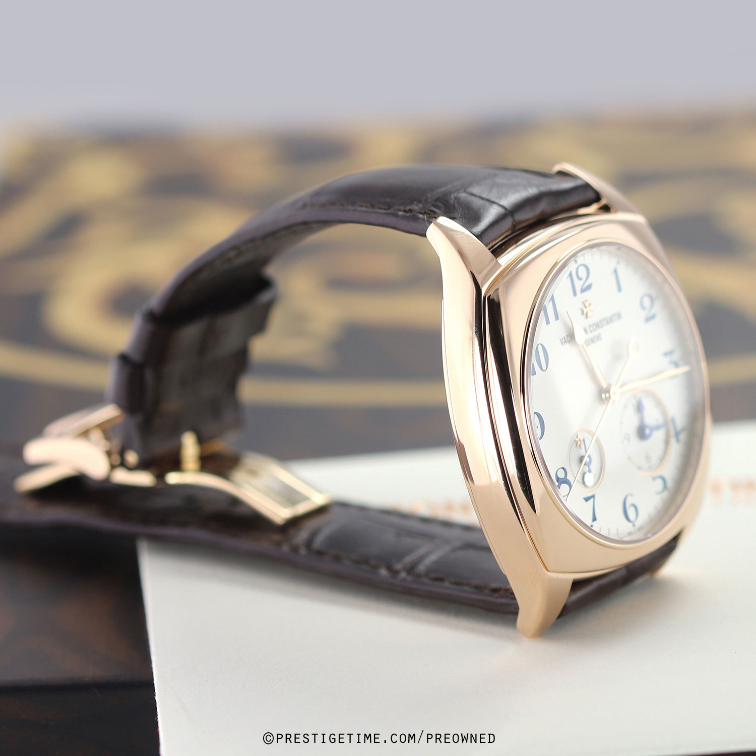 Strap: Fitted on its original Vacheron Constantin ark brown alligator leather strap with a solid 18kt rose gold tang buckle. The strap is excellent over condition with the majority of it wear life-span remaining, we would be comfortable rating the strap as in 90%+ condition.