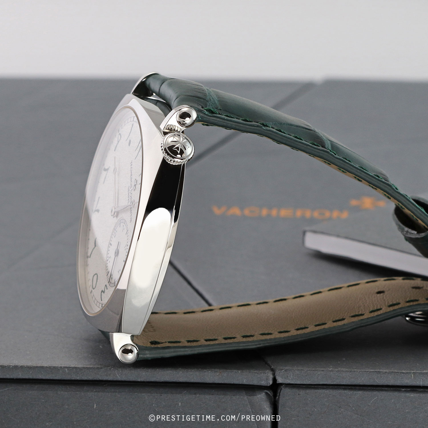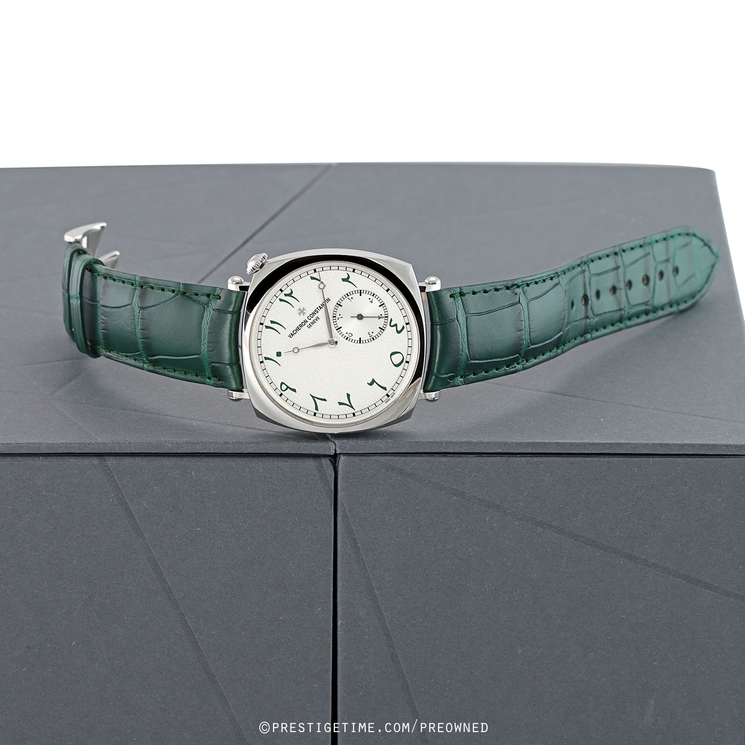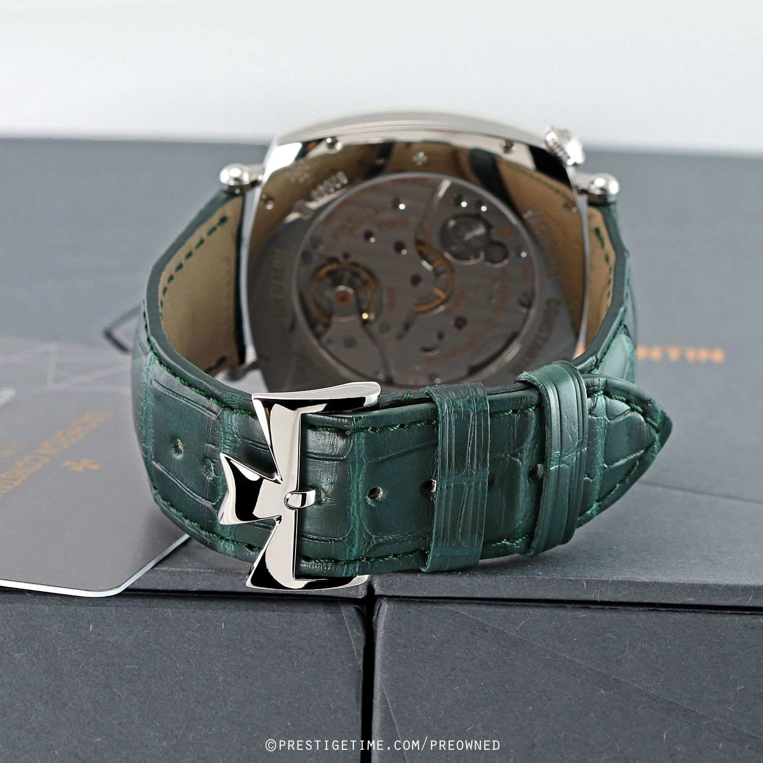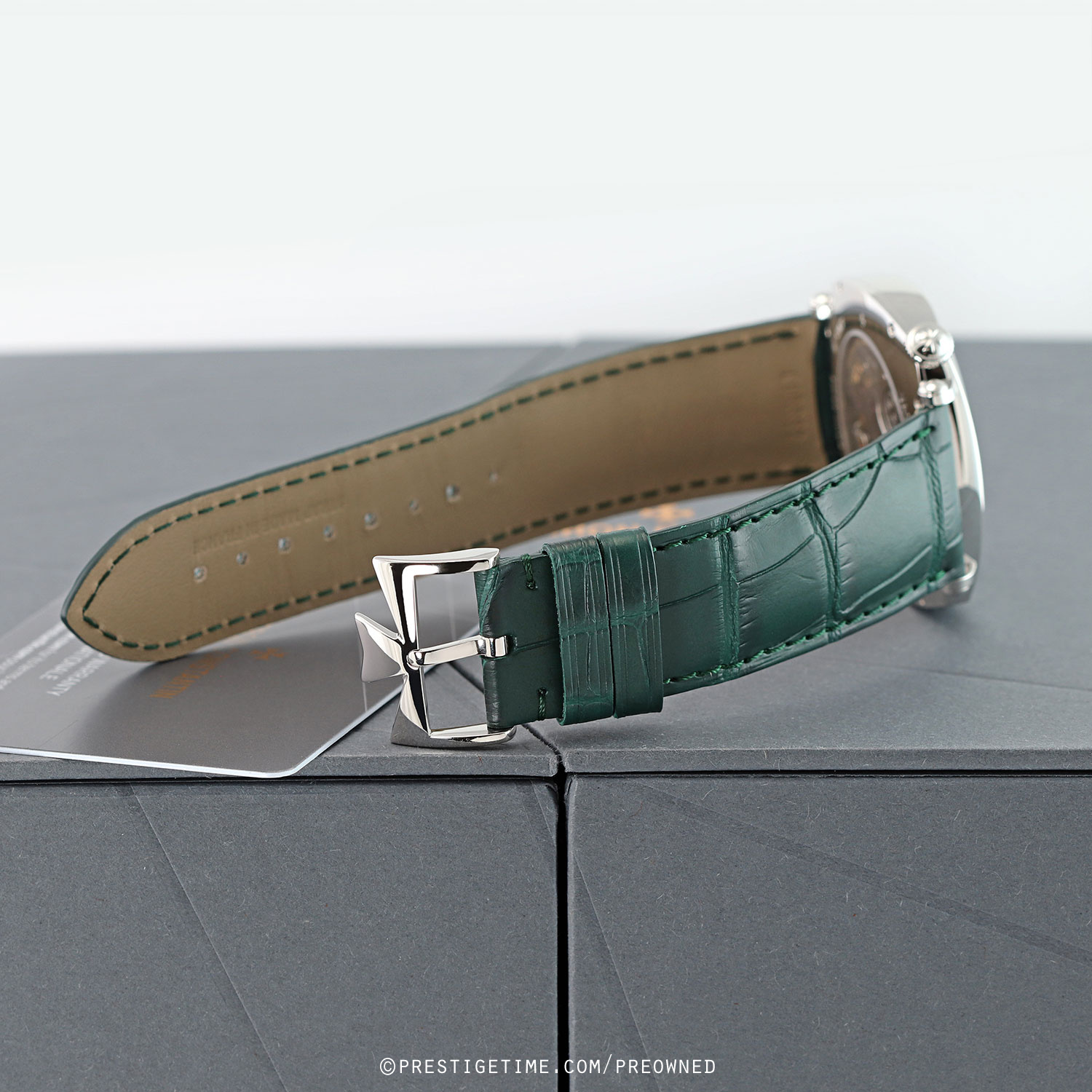 Strap: Fitted on its original Vacheron Constantin green alligator leather strap with a solid 950 platinum tang buckle. The strap is in excellent, near new condition with its full wear lifespan remaining. We would be comfortable rating the strap as in 98%+ condition.