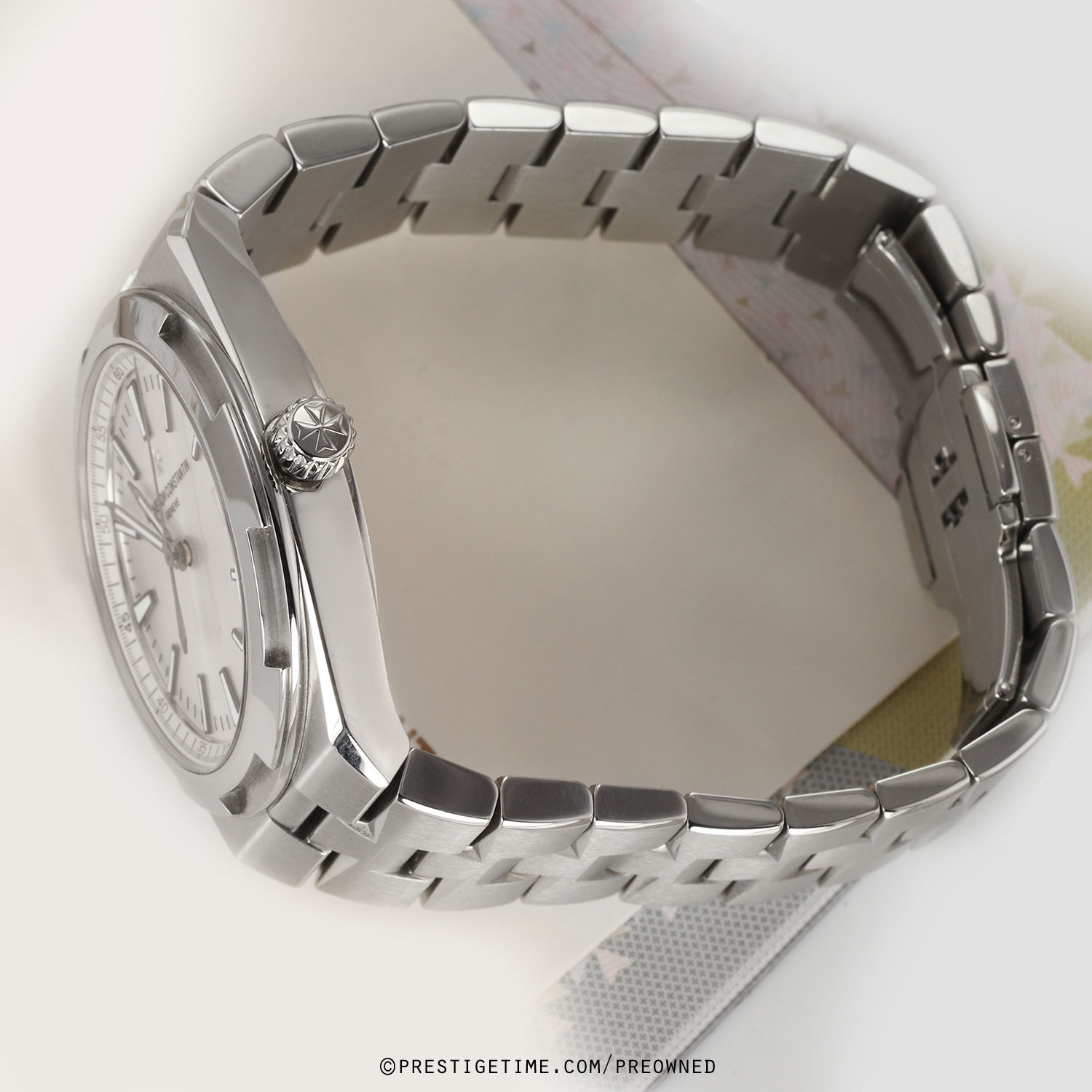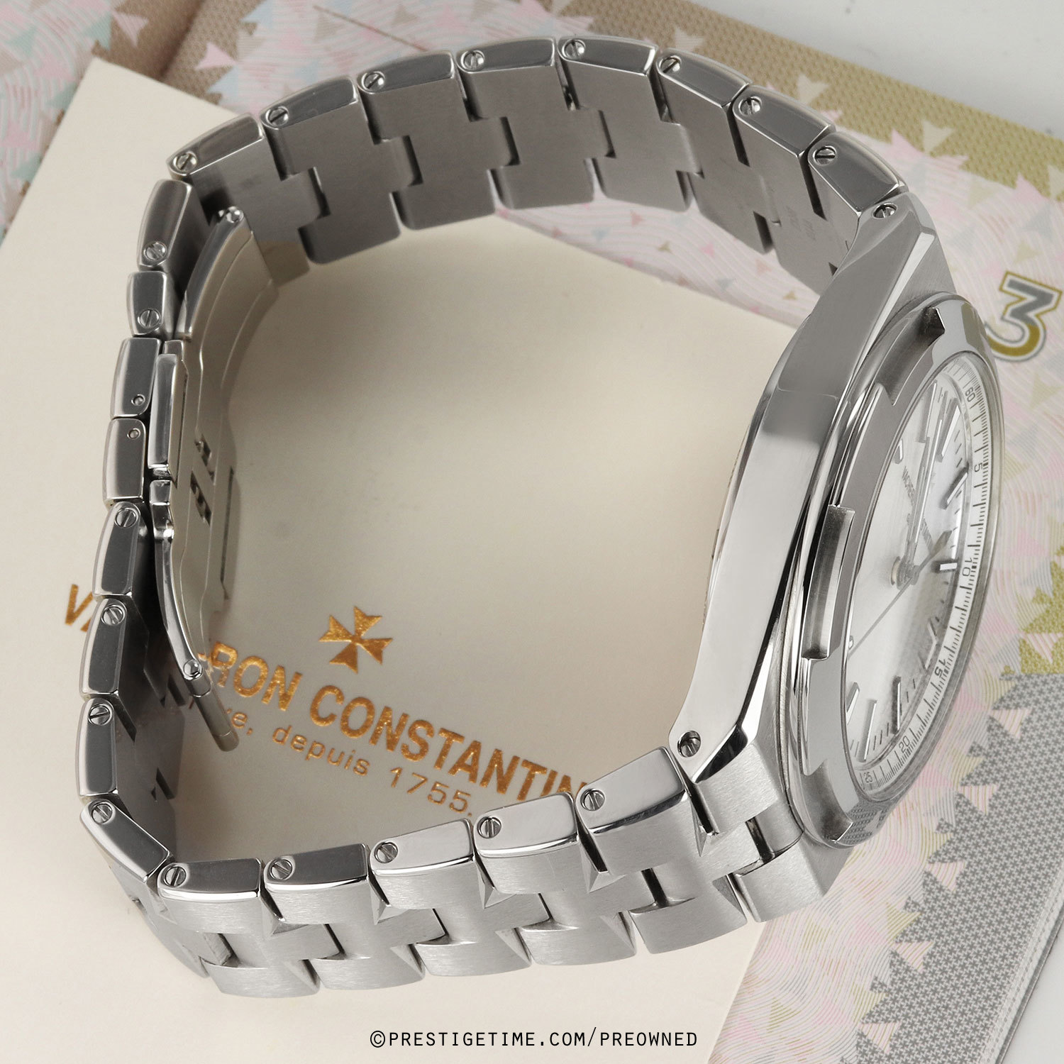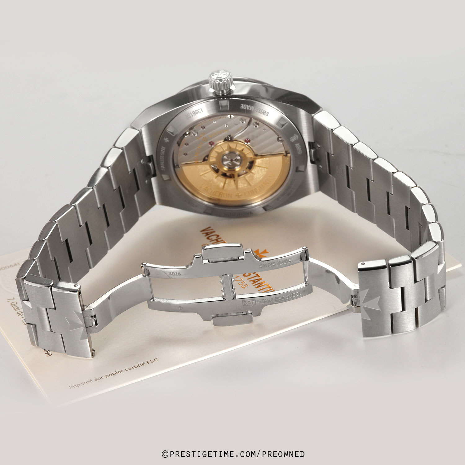 Strap: The watch is fitted on its original brushed & polished stainless steel bracelet with a push button deployant clasp. The bracelet is fully linked & will fit up to a 8" wrist. Included with the watch are two OEM Vacheron Constantin straps & a single deployant buckle. 1) Black alligator leather: This strap is in near brand new condition with full life remaining, we would rate it as 98% condition. 2) Black rubber: complete unworn. The bracelet/straps/buckle are interchangeable via a unique interchangeable strap/bracelet system - no tools necessary.