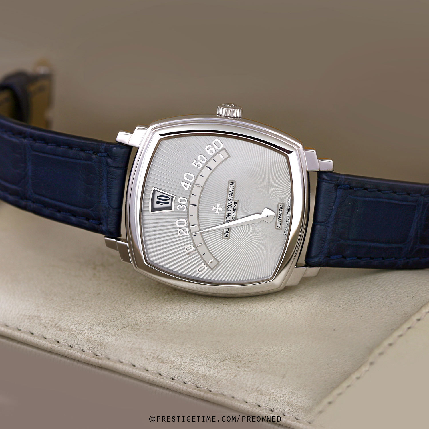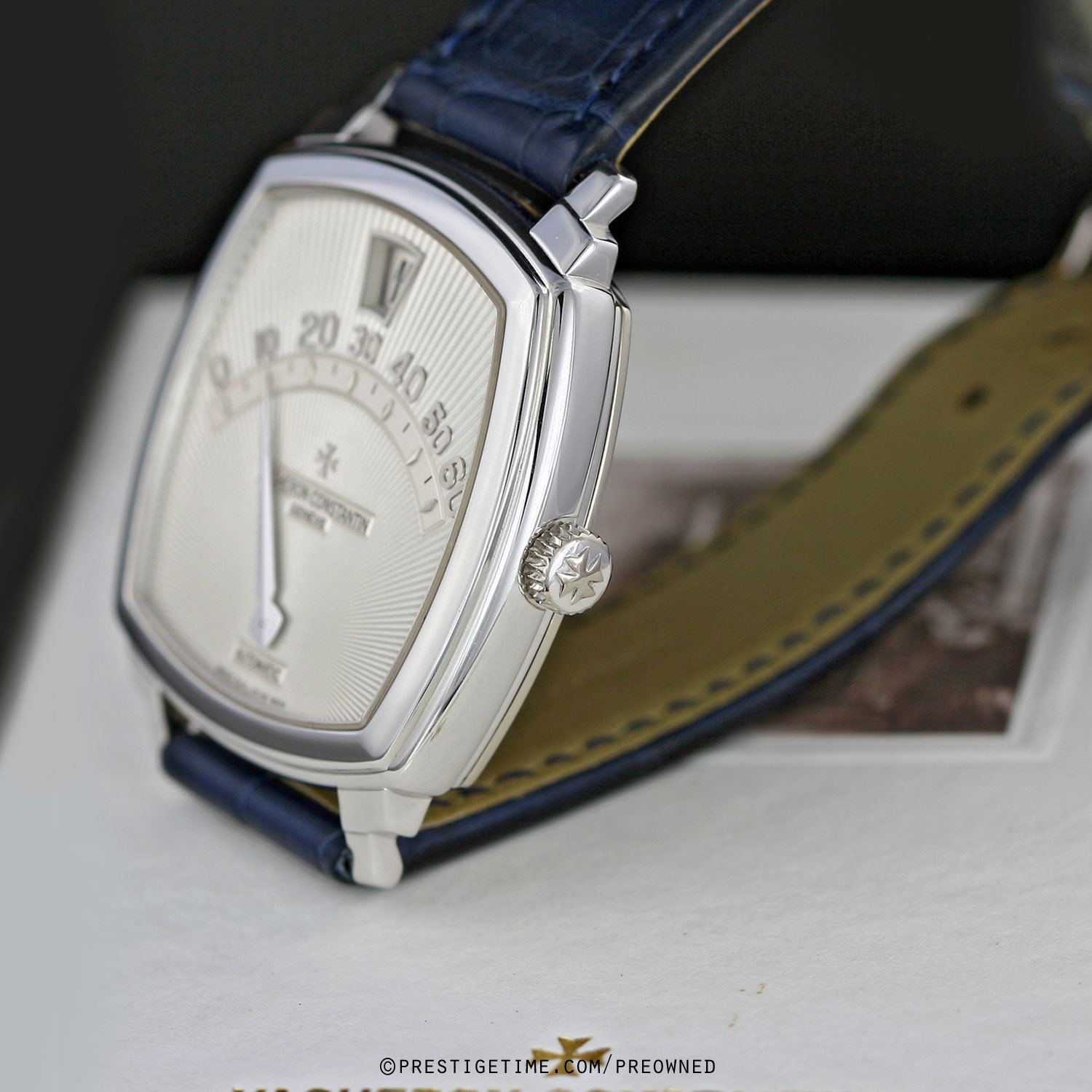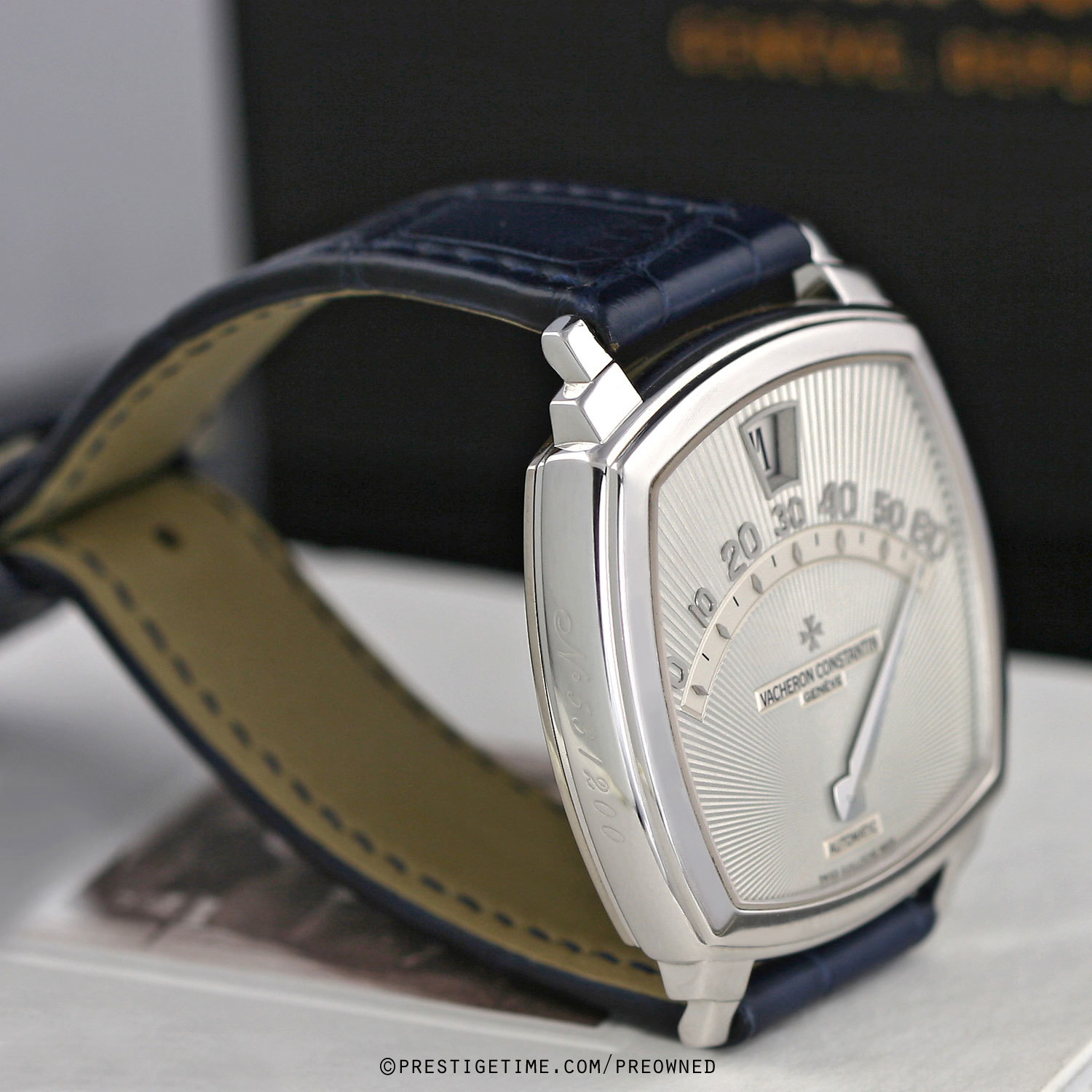 Fitted on a lightly worn Vacheron Constanin Original blue alligator strap & a signed 18kt white gold tang buckle. The strap is in very good condition with plenty of wear-time remaining.