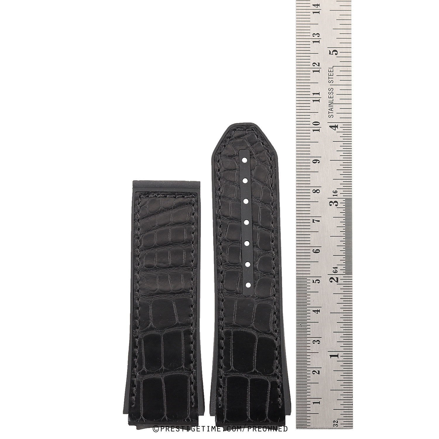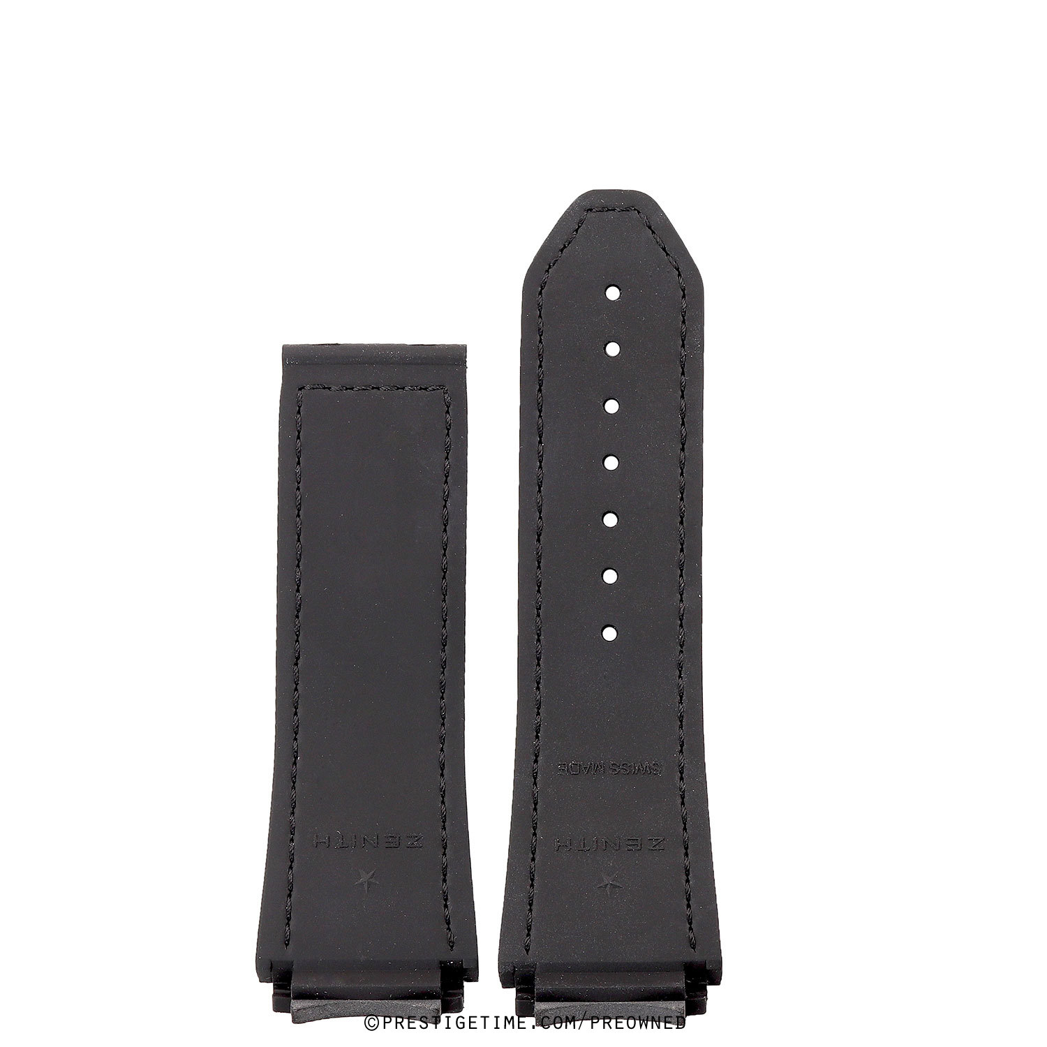 Genuine Zenith black alligator strap with black rubber lining & sides for deployant buckle. Designed for the Defy 21 44mm watch models.