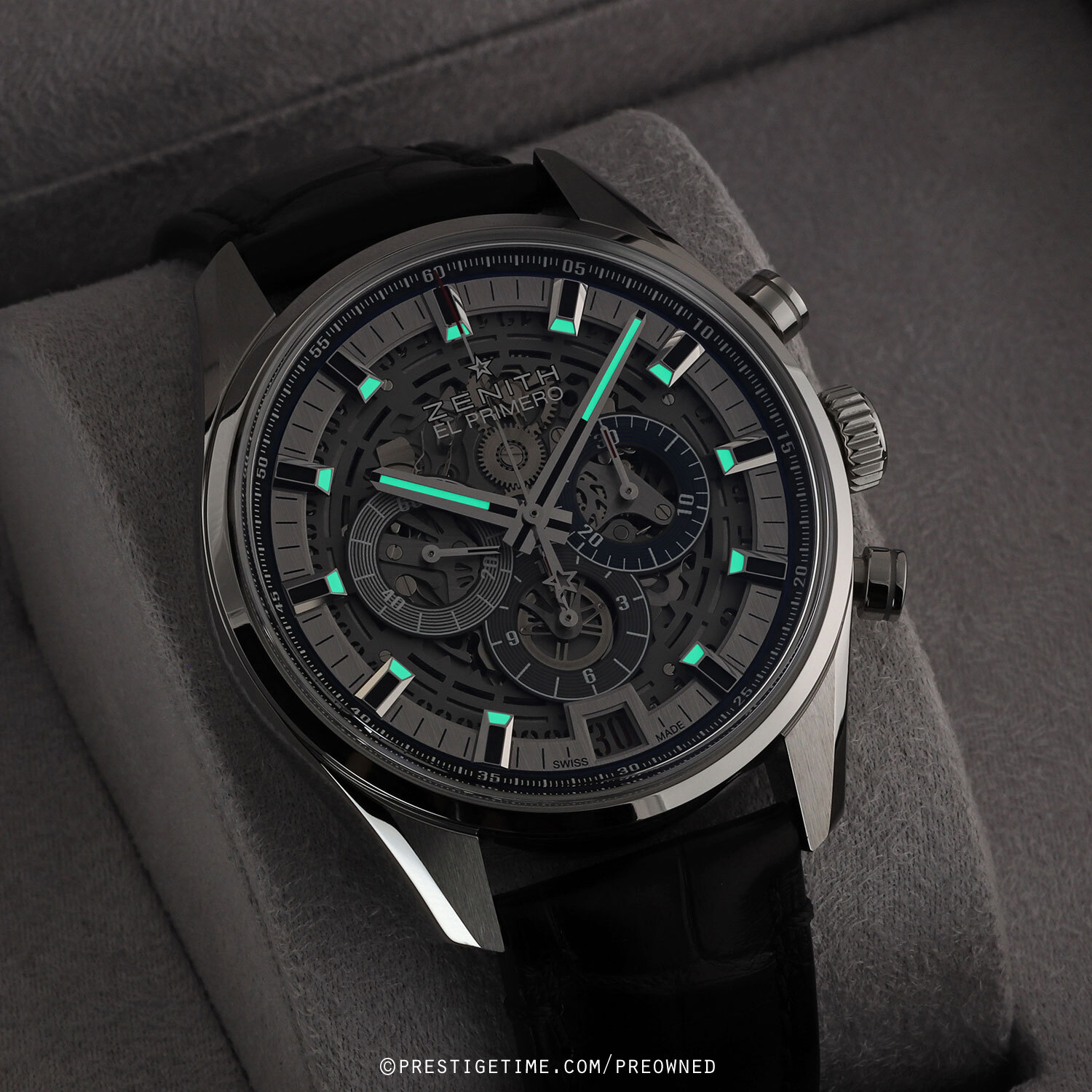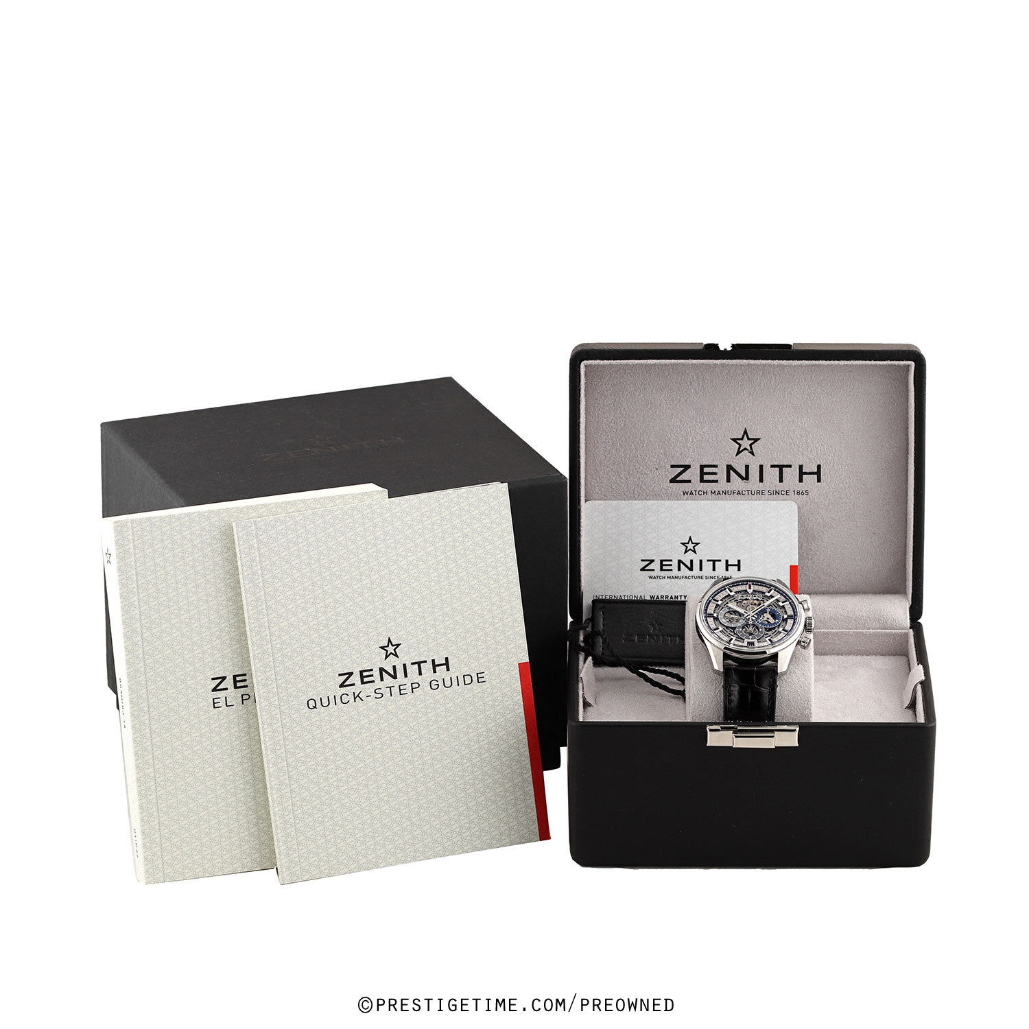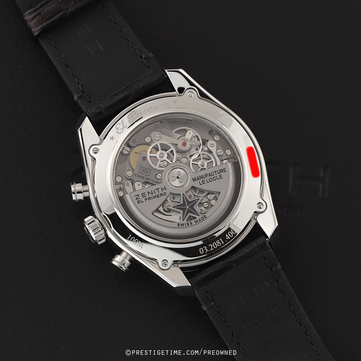 Movement: Powered by an in-house Zenith El Primero caliber 400 B, which beats at 36,600 vph (5Hz), contains 31 jewels & has a power reserve of +/- 50 hours.