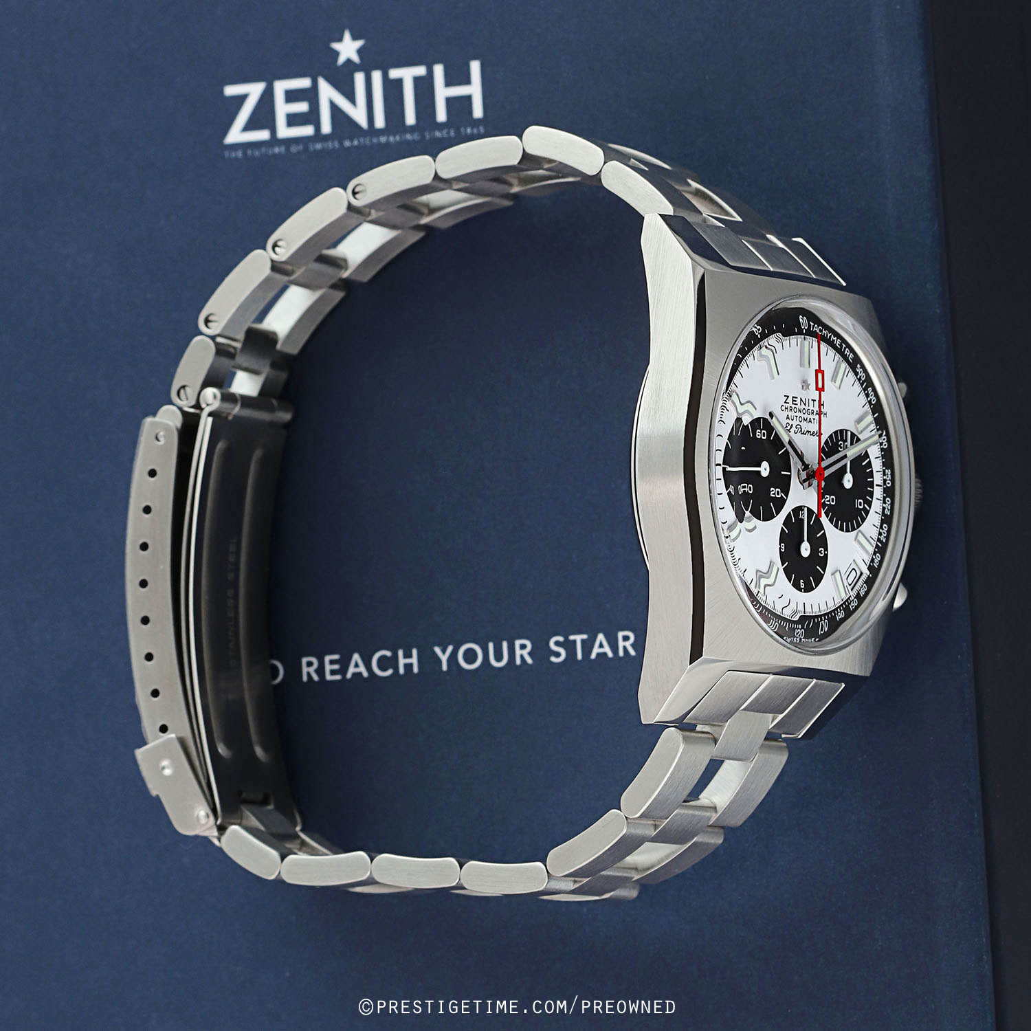 Zenith Chronomaster El Primero A384 Revival - from its 37mm tonneau shaped case to its panda dial & it Gay Frères ladder style bracelet the Zenith A384 Revival is a faithful reproduction of the original model from 1969.