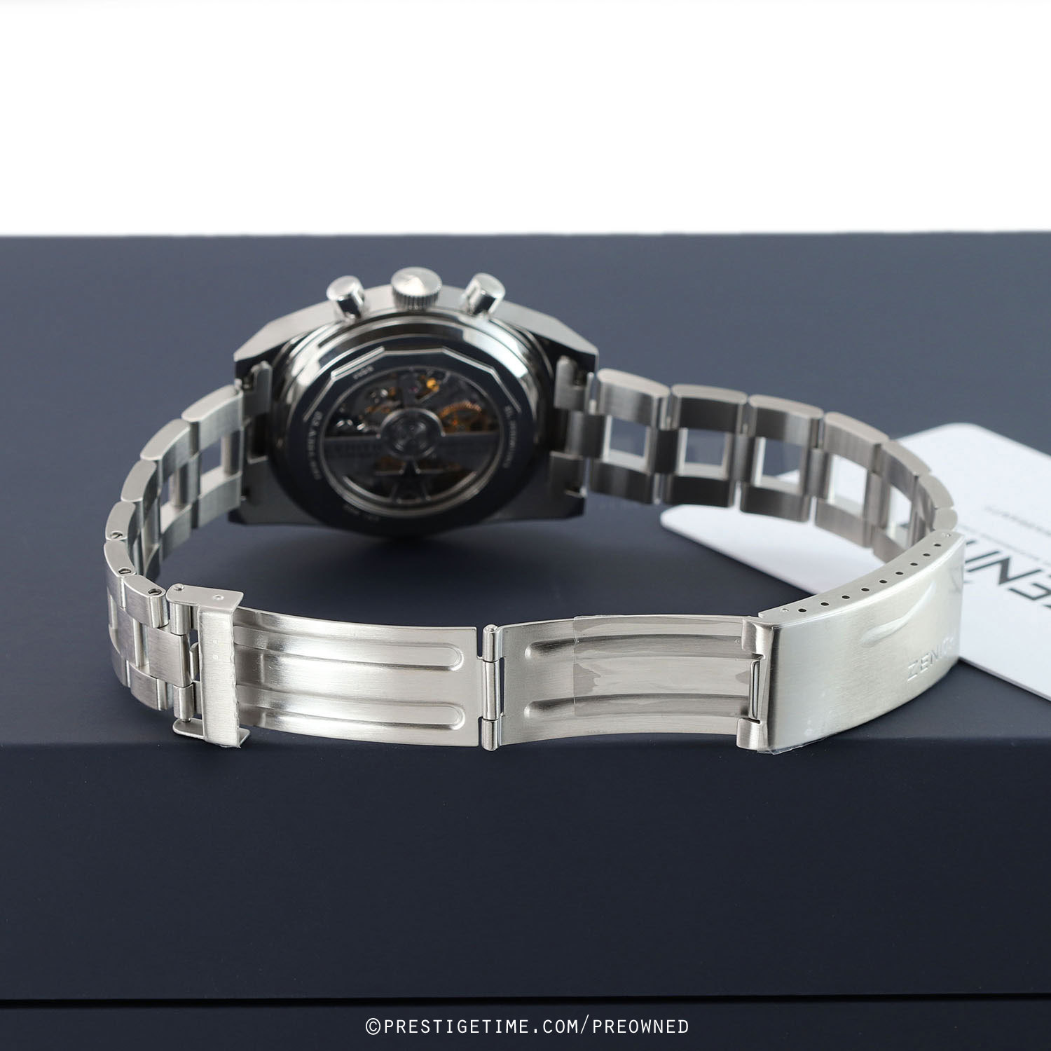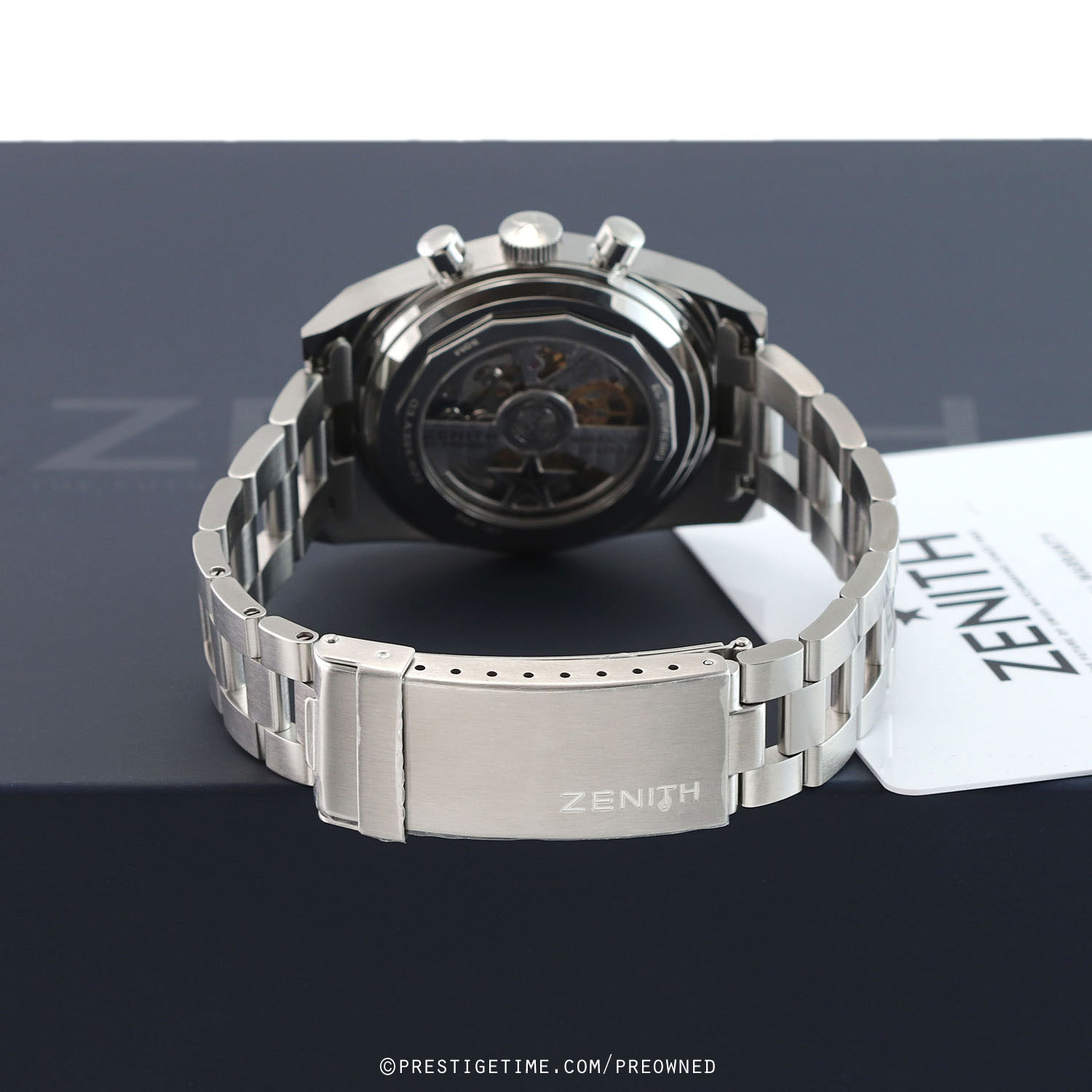 Movement: Powered by a Zenith caliber El Primer 400, beats at 36,000 vph (5Hz), contains 31 jewels & has a power reserve of +/- 50 hours.