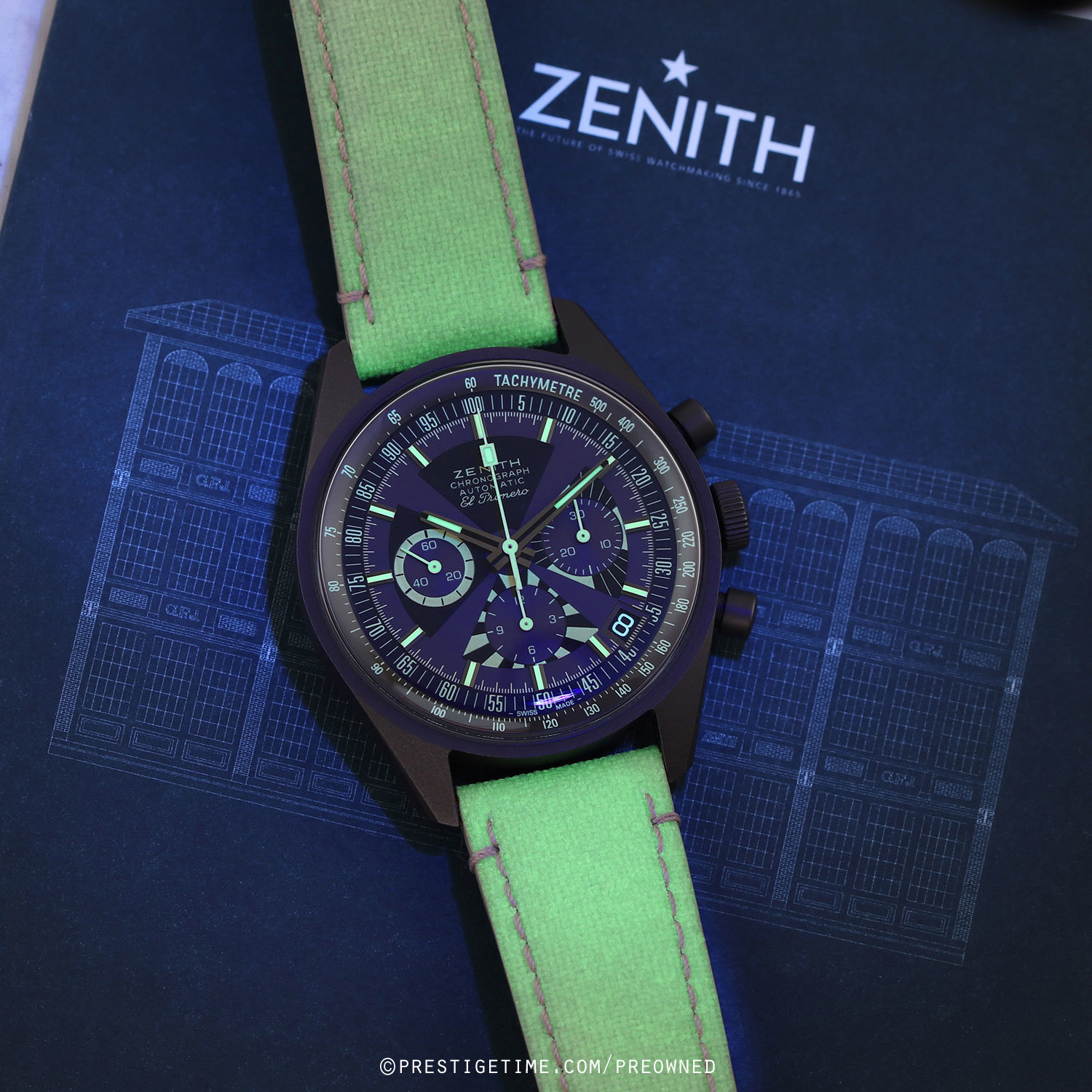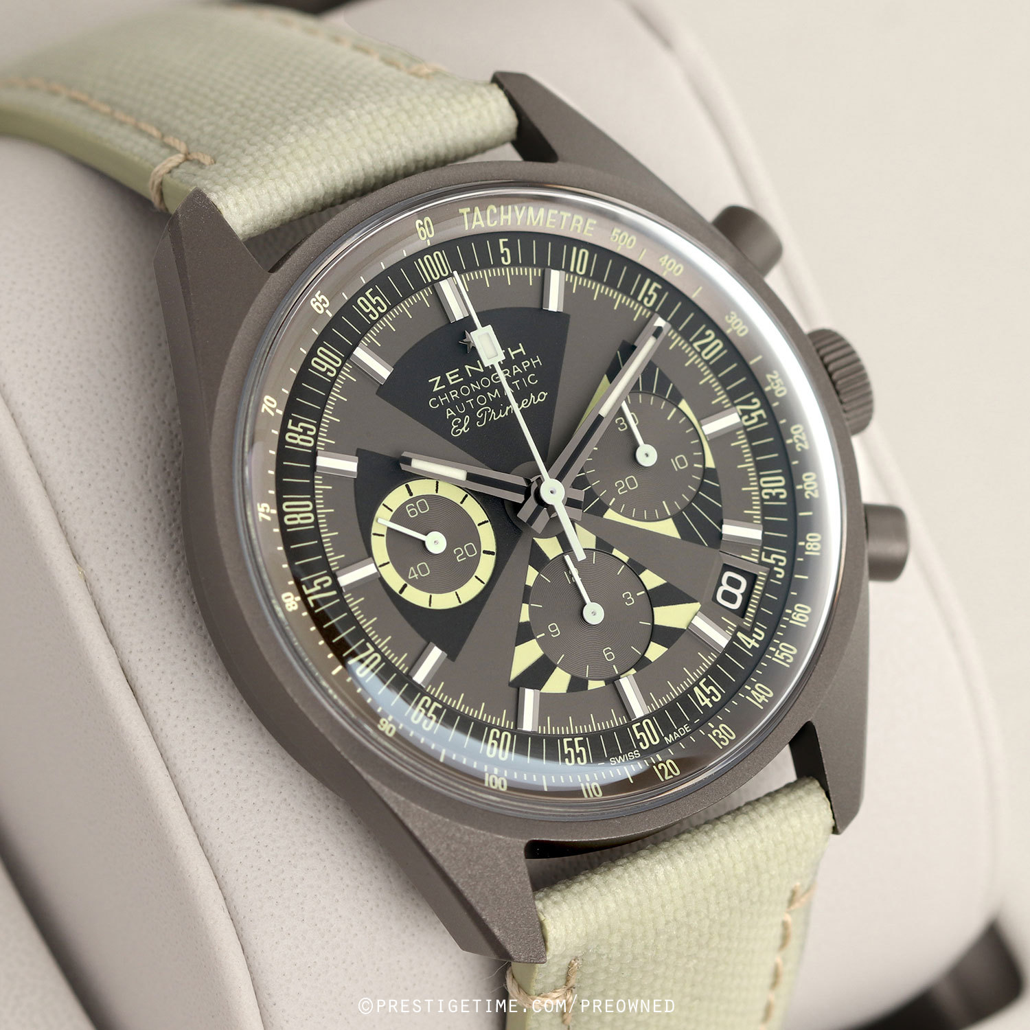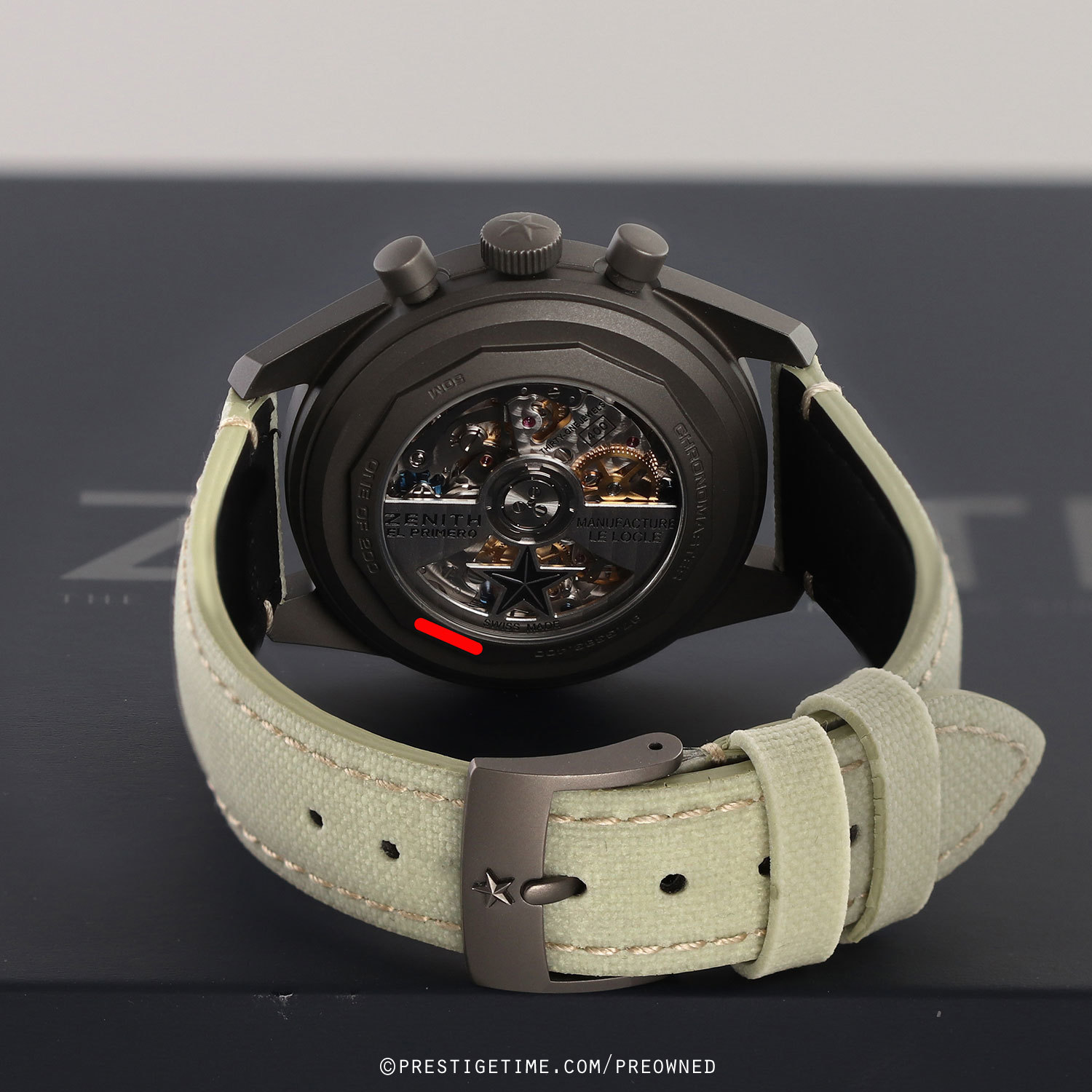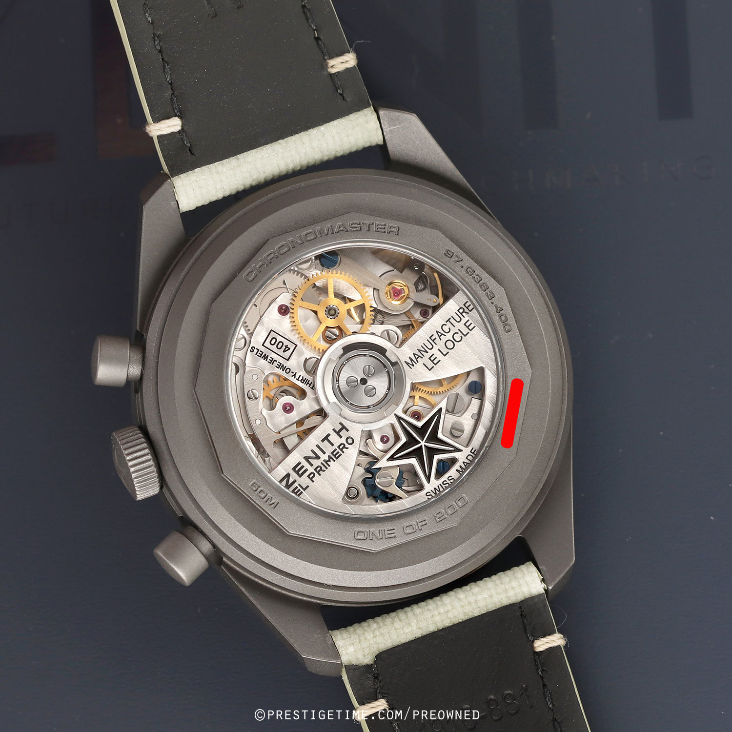 Movement: Powered by a Zenith caliber El Primero 400, beats at 36,600 vph (5Hz), contains 31 jewels & has a power reserve of +/- 50 hours.