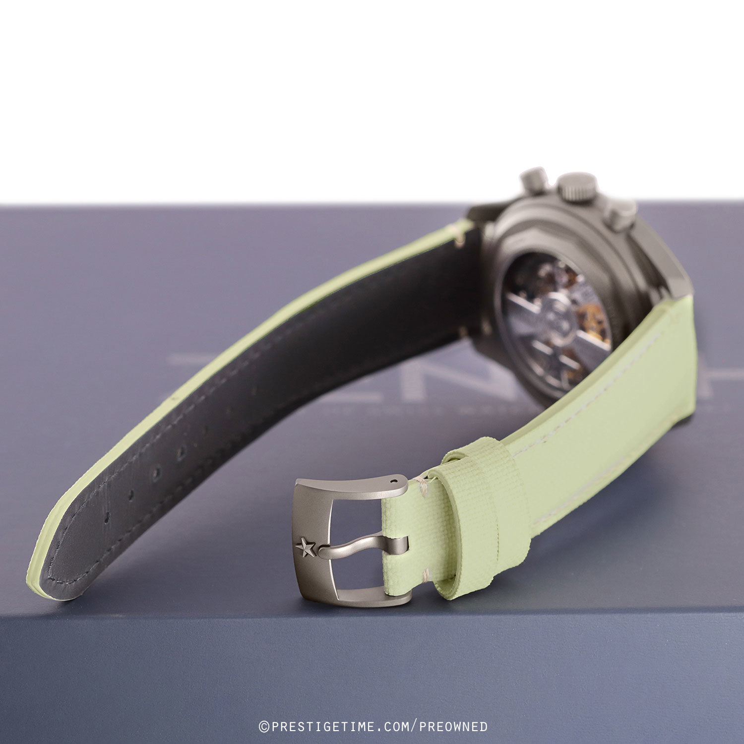 Movement: Powered by a Zenith caliber El Primero 400, beats at 36,600 vph (5Hz), contains 31 jewels & has a power reserve of +/- 50 hours.