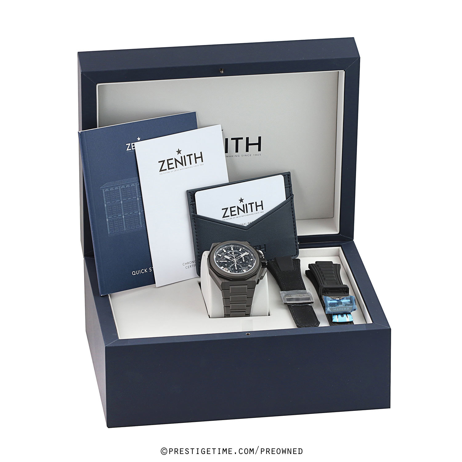 Bracelet & Straps: Interchangeable strap system via buttons on the case back lugs. This watch is delivered with 3 OEM Zenith band options: